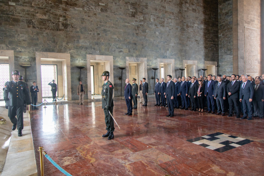 SGK Başkanı Kaya ve beraberindeki heyet Gazi Mustafa Kemal Atatürk’ün mozolesine çelenk bıraktı. Ardından saygı duruşuna geçildi.